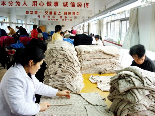 山東乳山工藝品有限責(zé)任公司始建于1956年,注冊資金1006萬元,占地面積1.19萬平方米,建筑面積2.55萬平方米,轄衣衫廠、抽紗廠兩個(gè)分廠,加工銷售機(jī)繡制品、針織衣衫、手工藝品、紡織輔料等。年加工總量880萬件(套),年銷售收入1.8億,80%以上產(chǎn)品銷往美國、加拿大、韓國、日本等國家和地區(qū)。現(xiàn)有在職職工600人。擁有各類毛衫生產(chǎn)設(shè)備1000多臺,公司總資產(chǎn)1.4億。